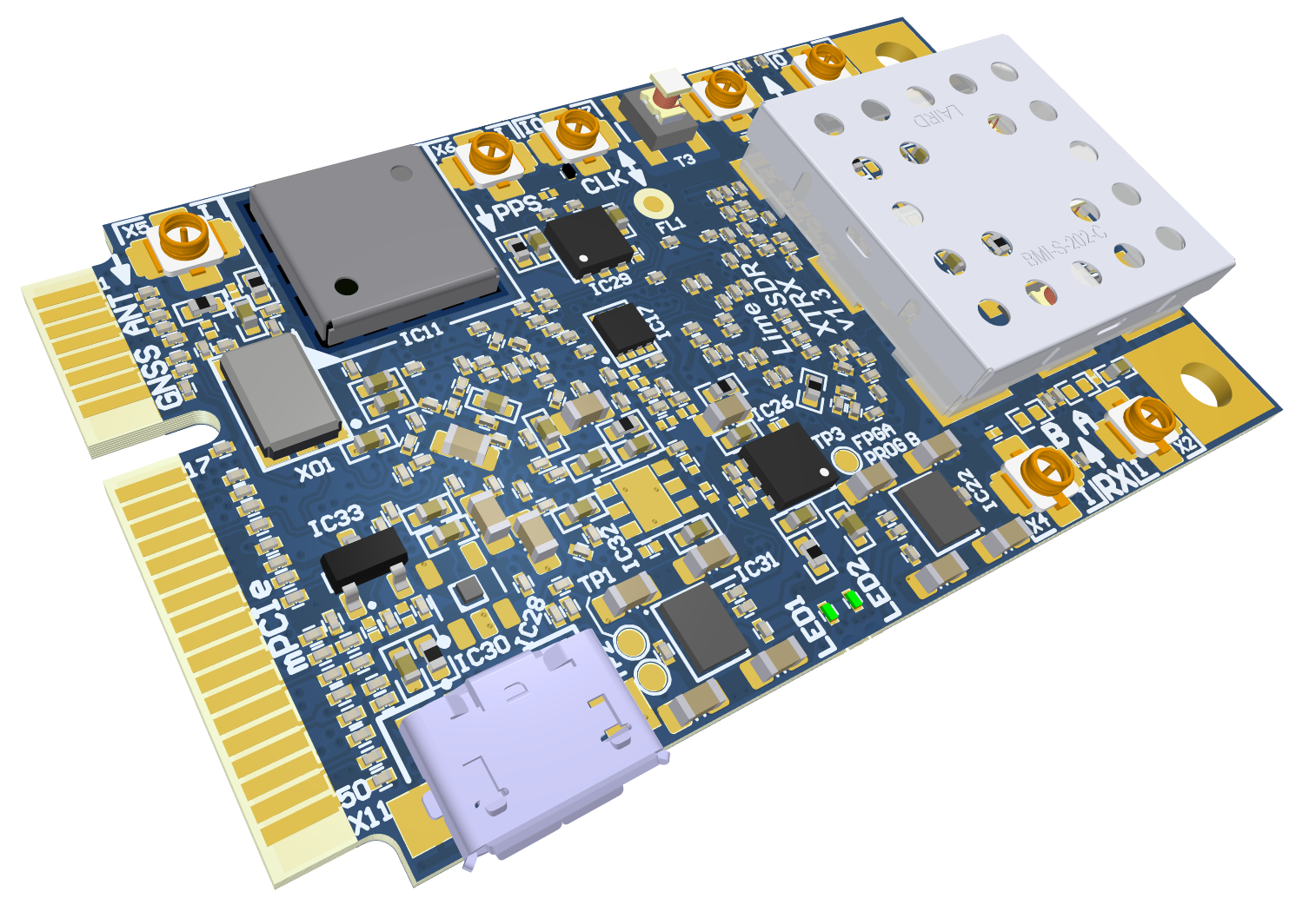 LimeSDR XTRX is Small form factor mini PCIe expansion card Software Defined Radio (SDR) board.